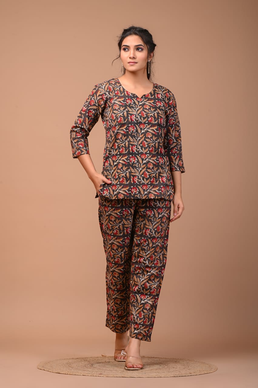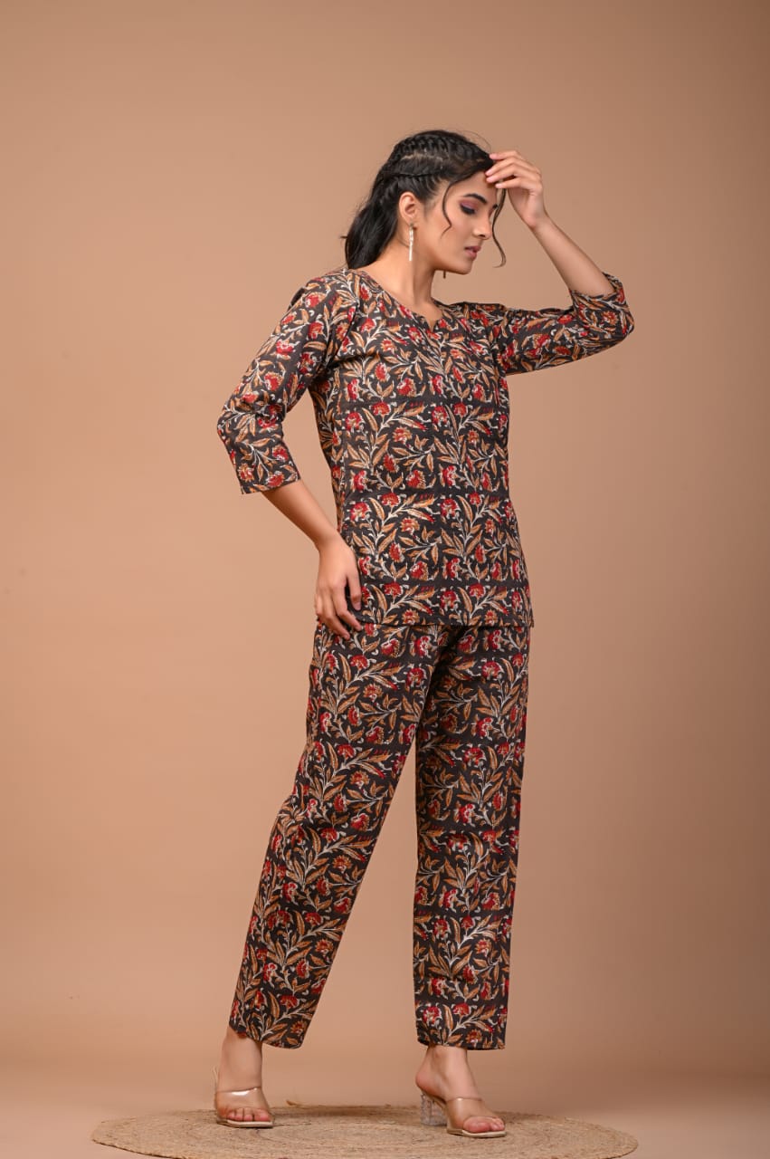 Hand Blocks Prints cotton Co-ord Set, Cotton Cord Set for Women, Co-Ord Set, Party Wear Co-Ord Set, , Co-ord set with pant and tunic top