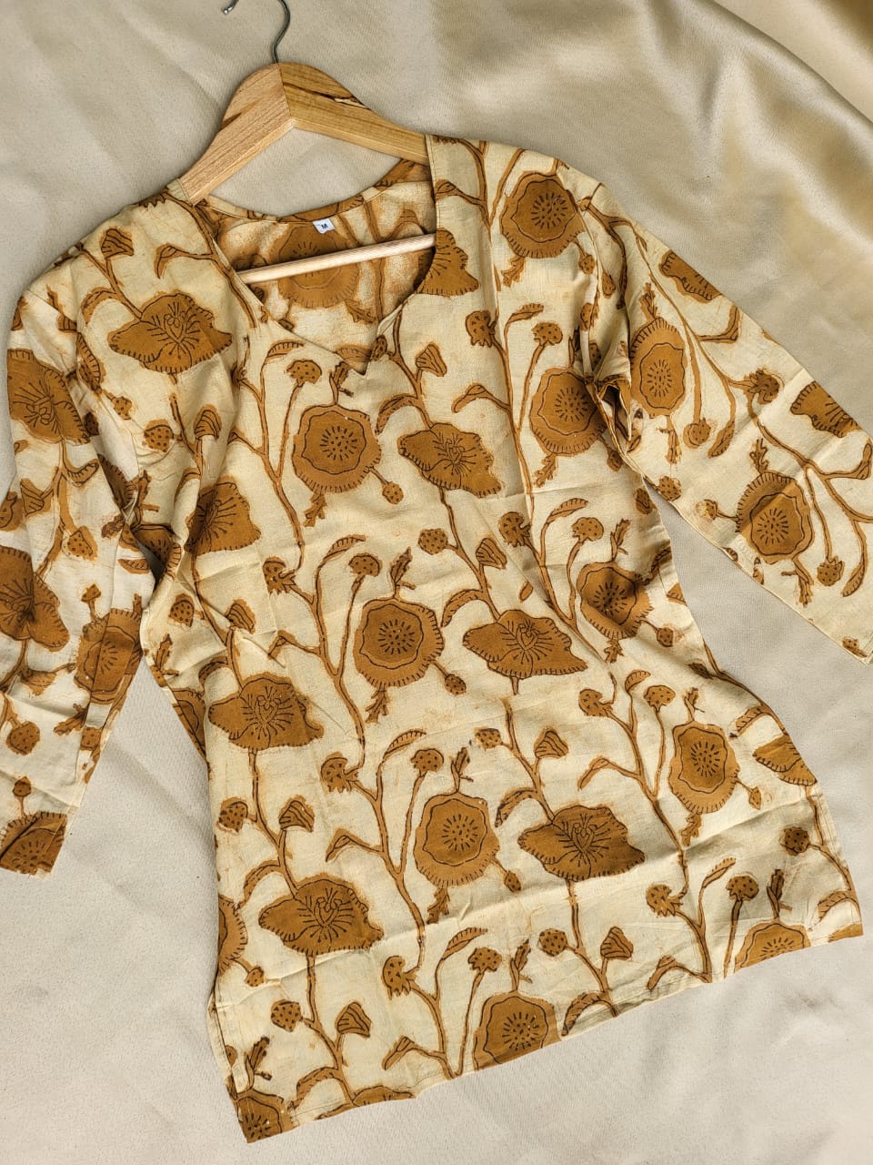 Pure cotton Vanaspati Ajrakh and Kalamkari hand block natural vegetable print stitched ethnic short kurti